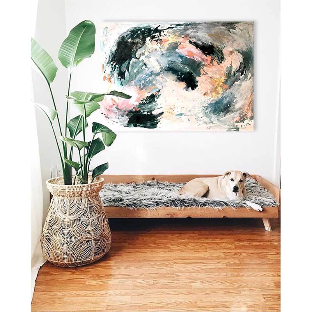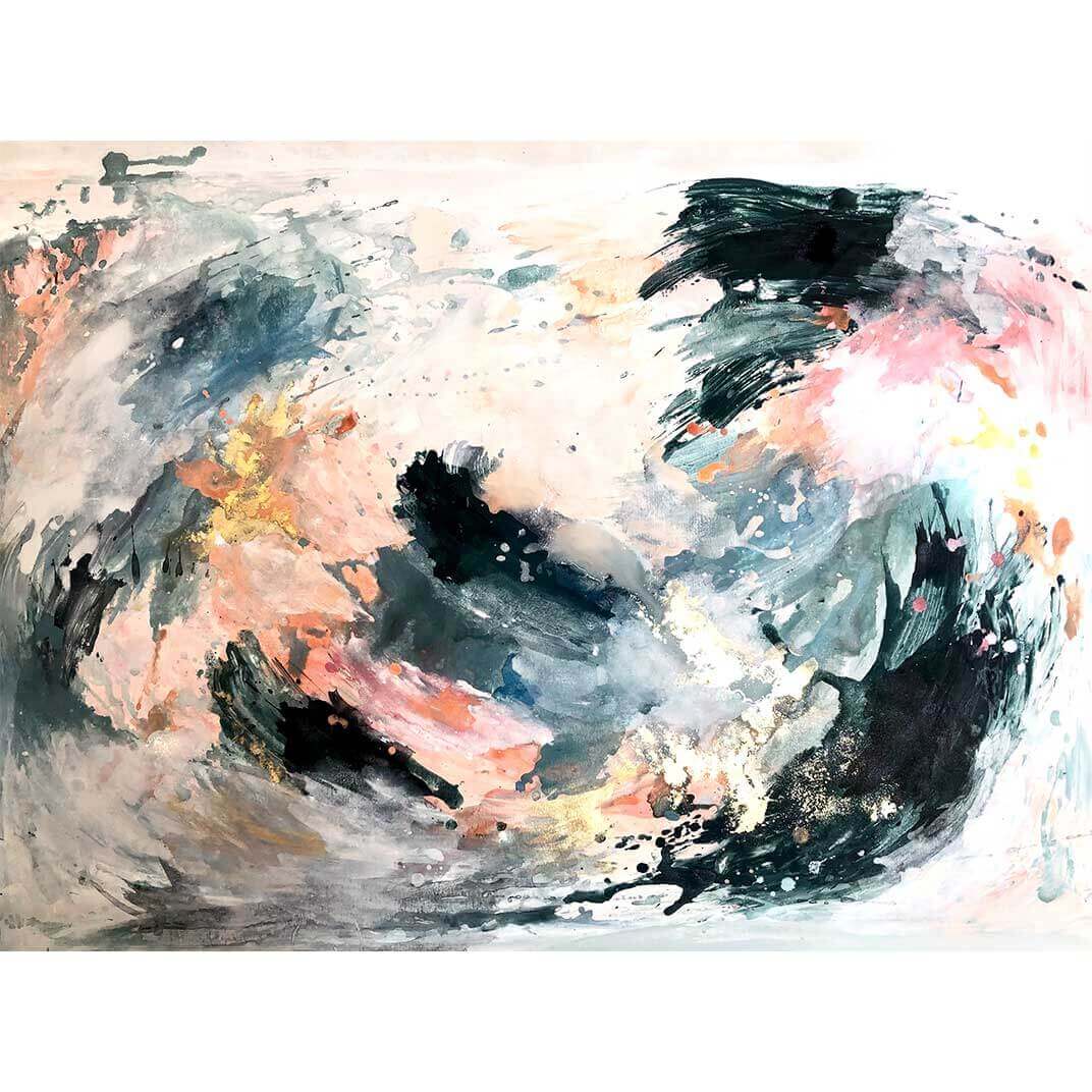 Obra que voló a Barcelona. Texturas, manchas y colores, es el punto de partida de esta obra donde la inspiración es el movimiento, el ritmo, y el cambio.