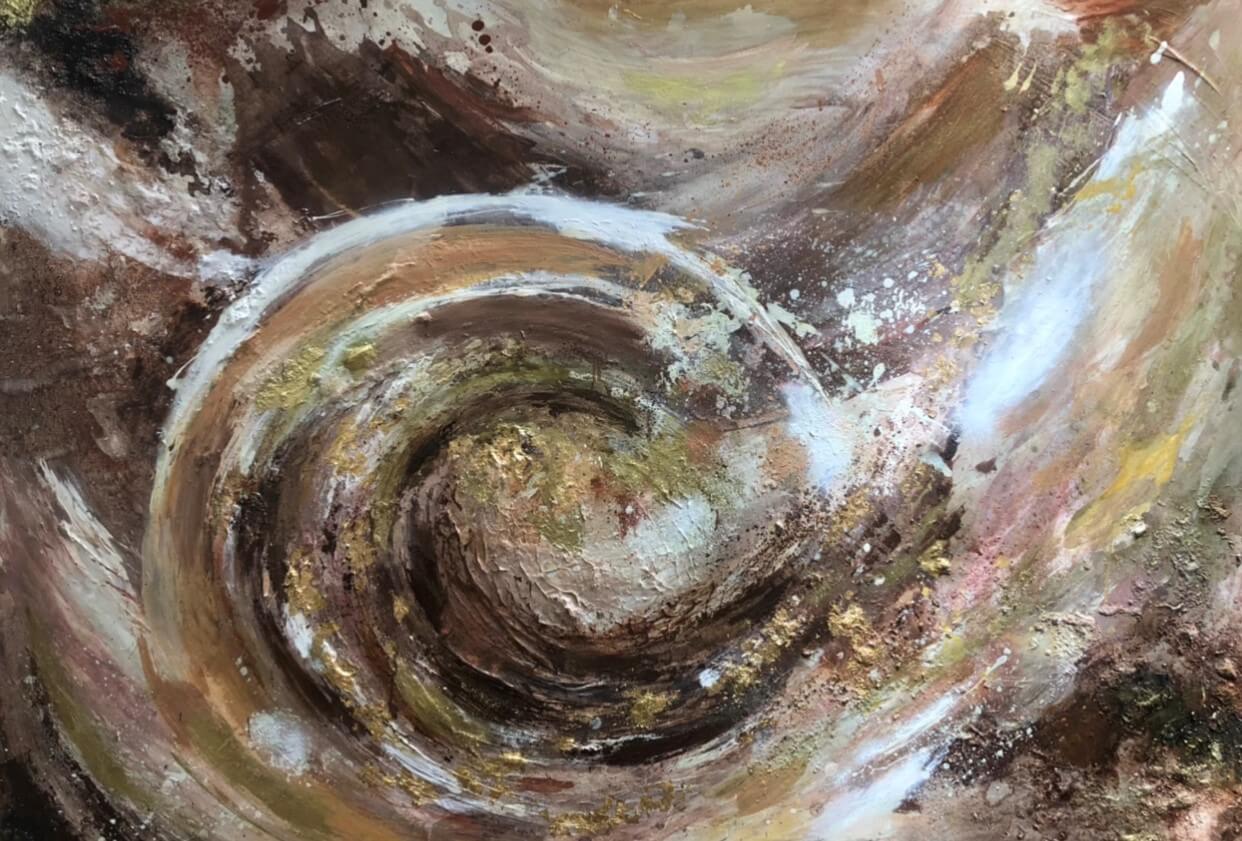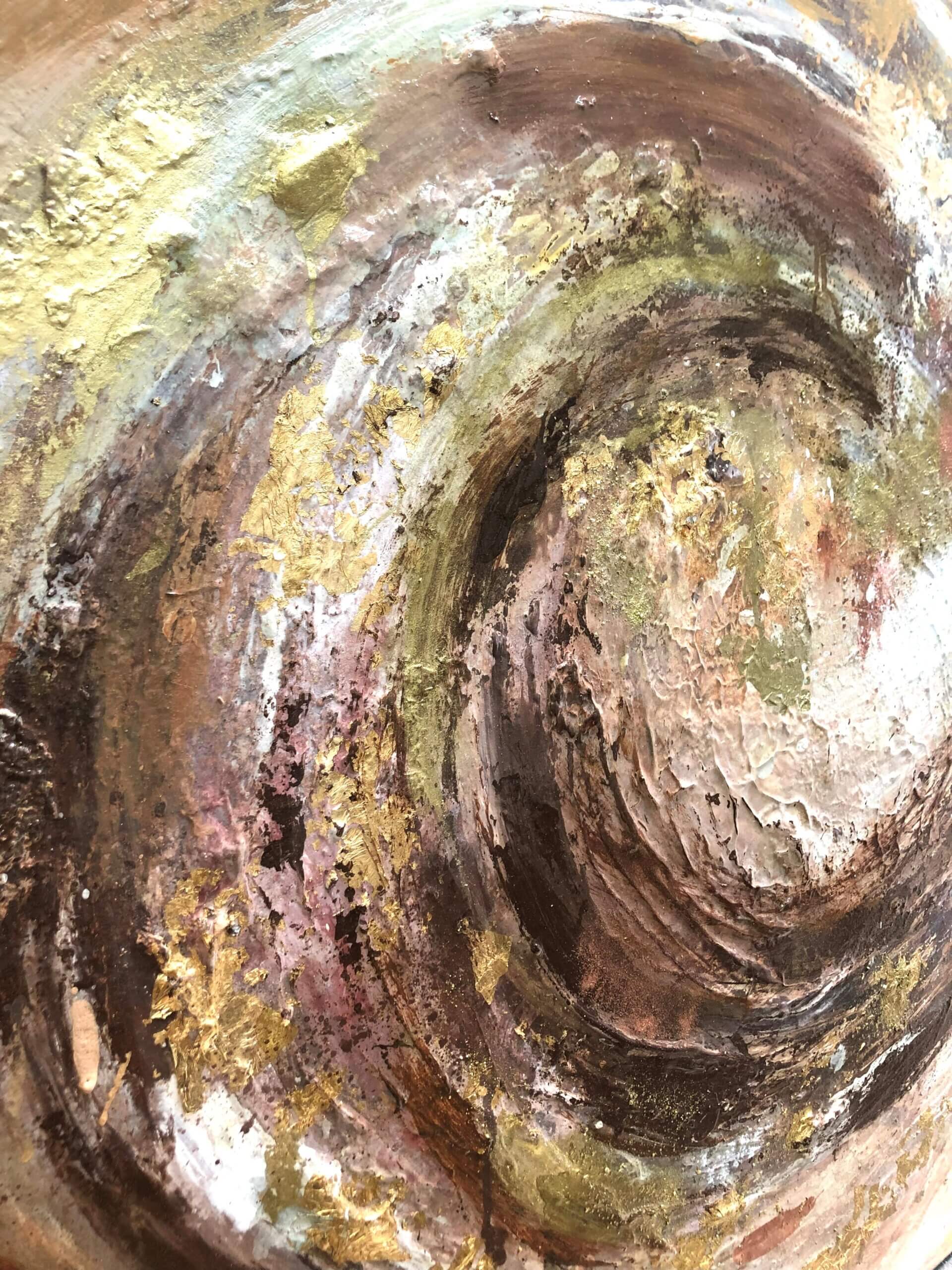 Látex + agua + café + pasta para modelar + textura de eucalipto + óleo + resina + dorado a la hoja + todo el amor de mis manos