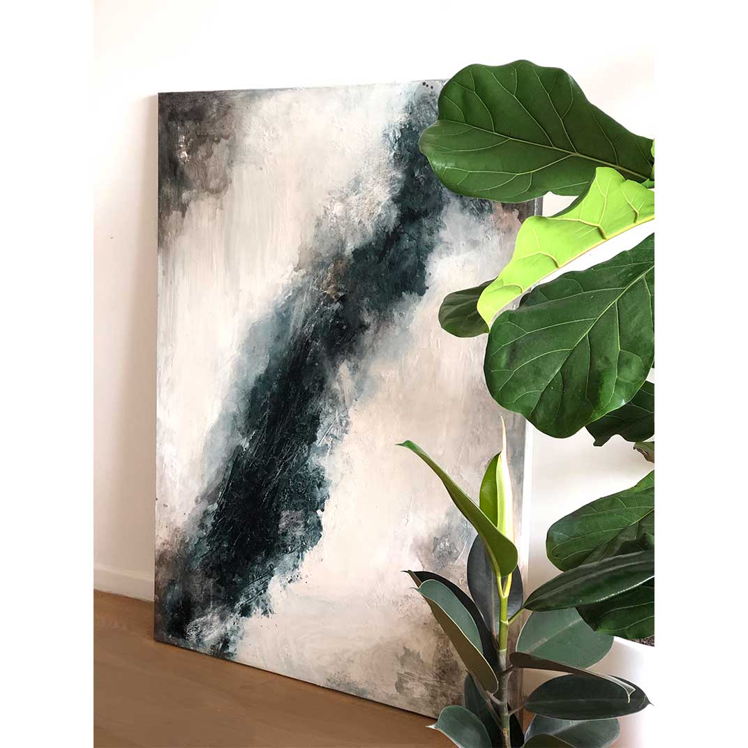 Látex + agua + pasta para modelar + textura de eucalipto + óleo + resina + todo el amor de mis manos