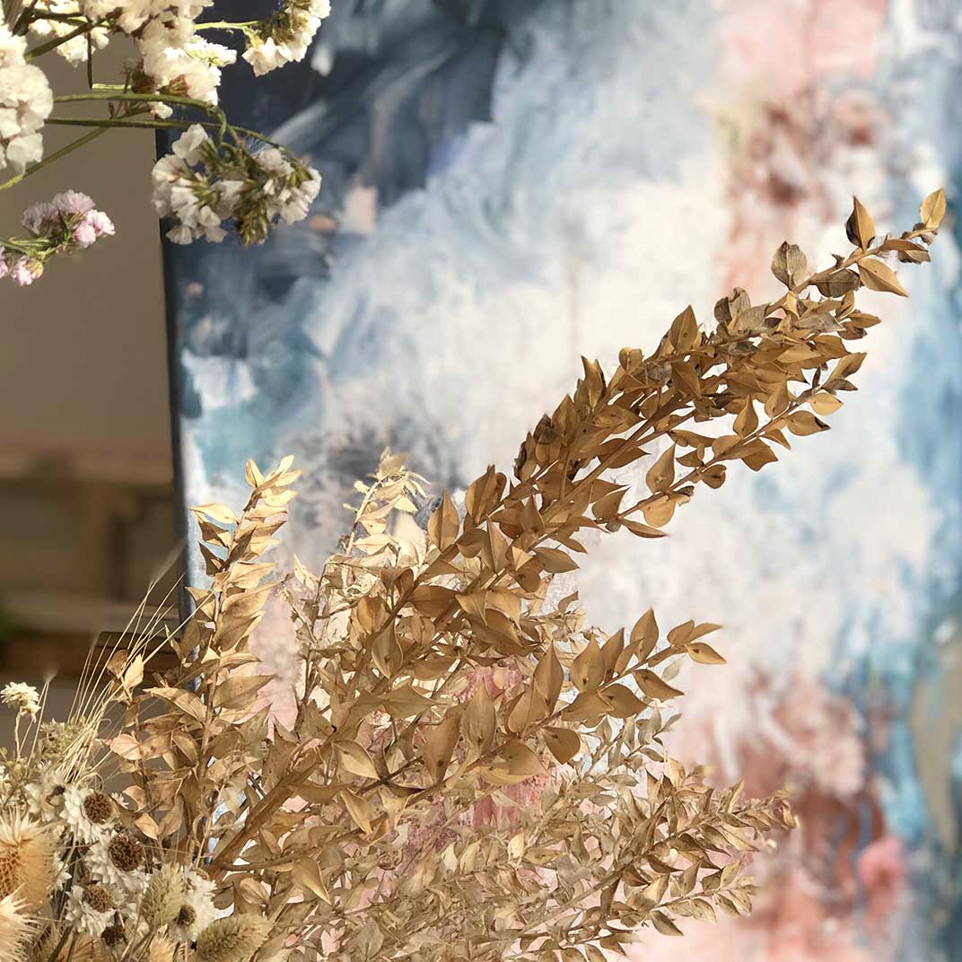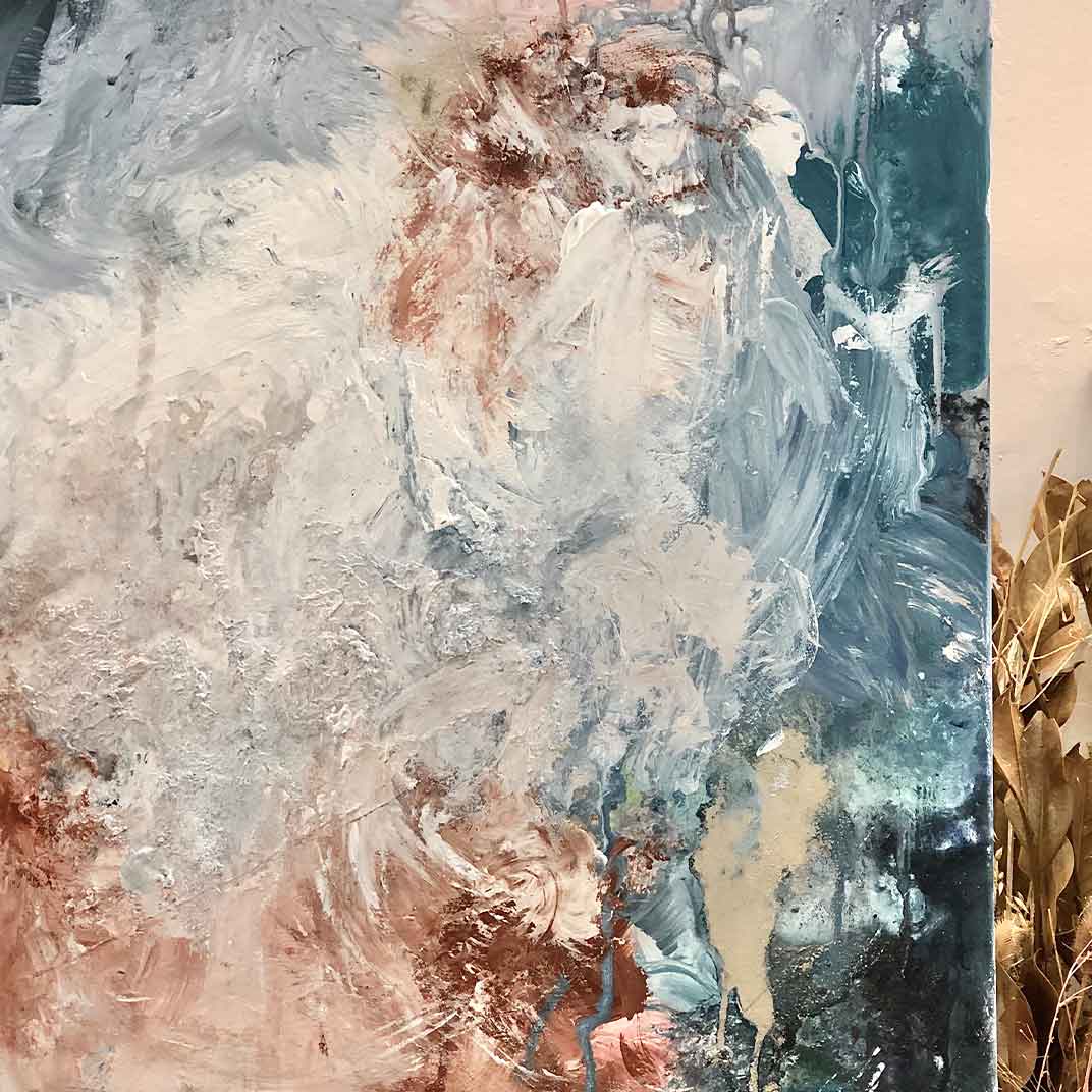 Látex + agua + pasta para modelar + textura de eucalipto + óleo + resina + todo el amor de mis manos