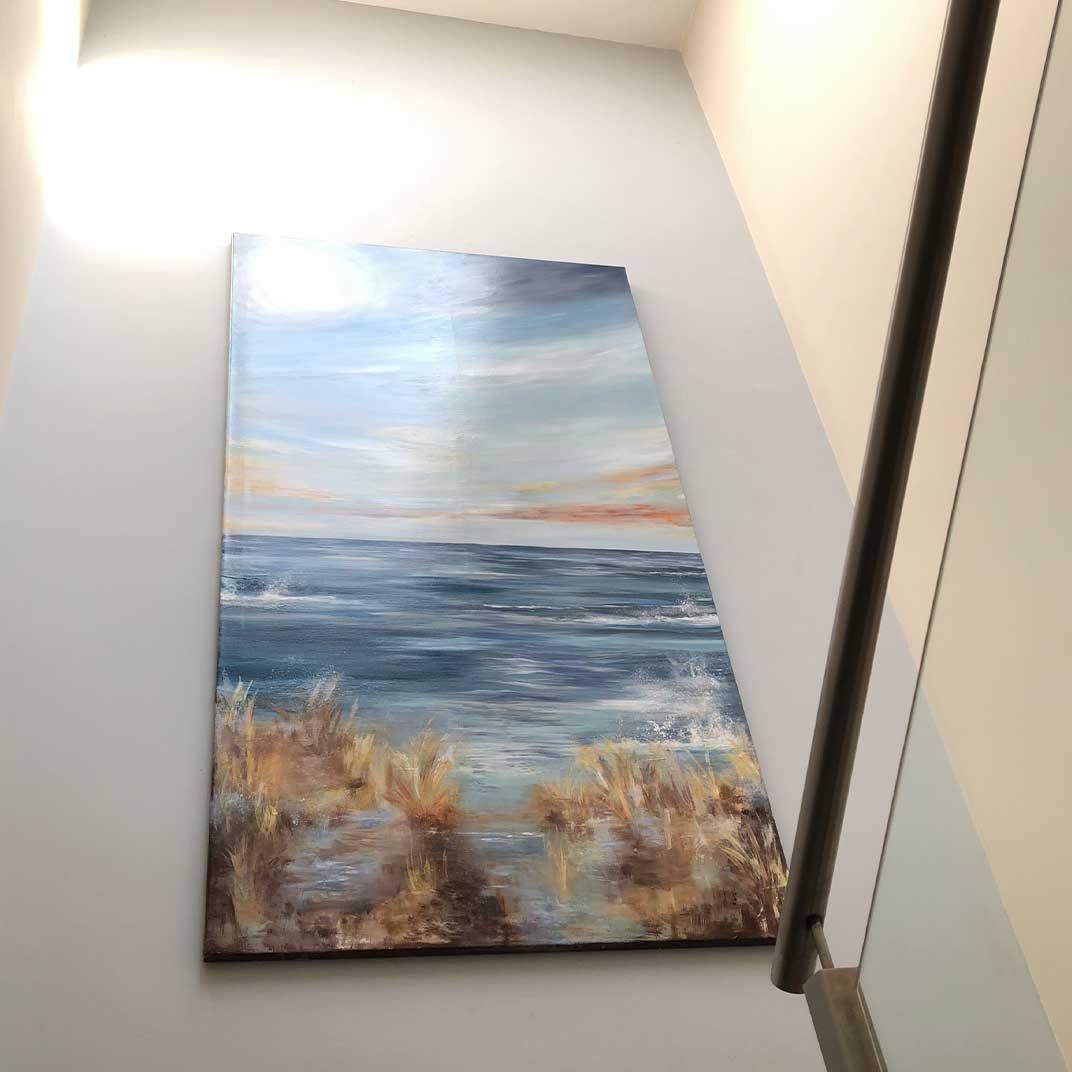 Su idea cuando me llamó era clara: tener una obra que la invite todos los días, al bajar por la escalera de su casa a tener una ventana con “vista al mar”